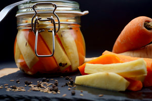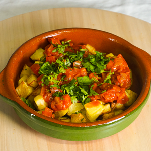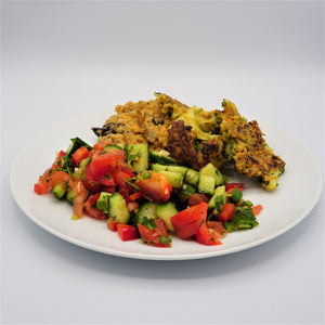 Shish spiced cauliflower fritters, butternut squash and aubergine, served with a crunchy fresh salad with lemon juice
